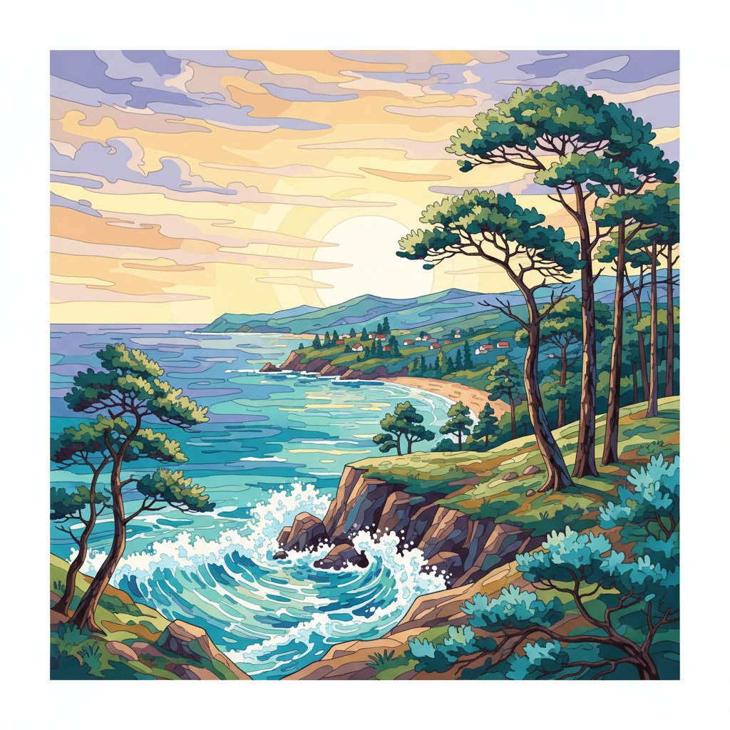 Immerse yourself in the tranquil beauty of coastal landscapes with this stunning Realistic Coastal Impressionist Pines Paint By Numbers kit. This exceptional painting experience captures the serene majesty of pine trees overlooking pristine shorelines. Each brushstroke brings you closer to creating your own impressionist masterpiece.