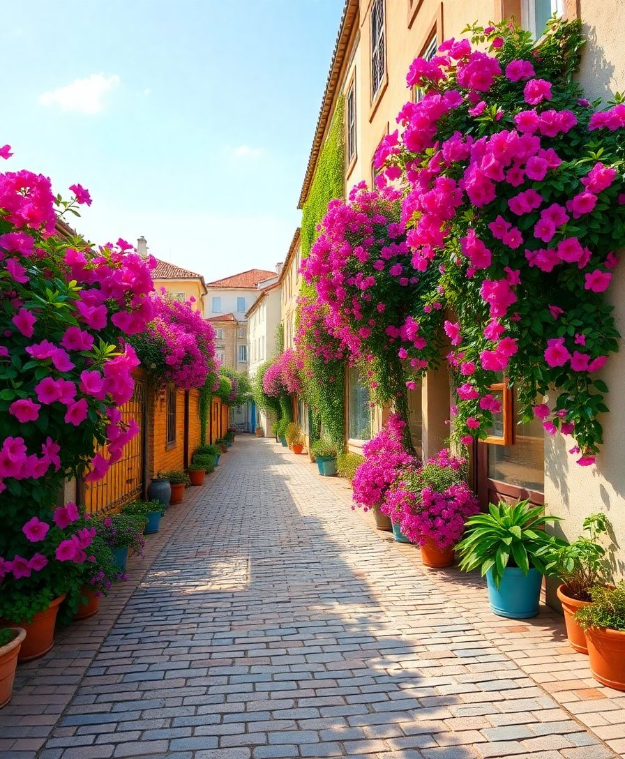 Realistic Cobblestone Bougainvillea Path Paint By Numbers