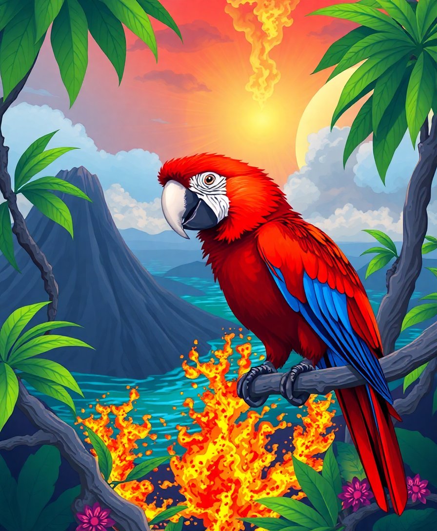 Create your own volcanic island escape today. This crimson parrot design combines tropical wildlife artistry with therapeutic painting benefits. Start your creative journey and discover the joy of detailed artistic expression.
