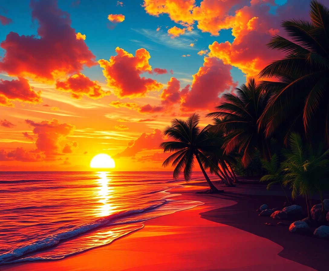This evening landscape offers more than visual beauty. Painting engages your mind in focused concentration while promoting relaxation. The warm palette and tropical horizon scene naturally evoke feelings of peace and tranquility. Additionally, research shows that art therapy significantly reduces anxiety and improves overall well-being.