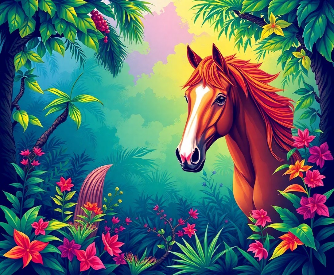 Transform your artistic space with this breathtaking Realistic Equine Jungle Vision Paint By Numbers masterpiece. This captivating design captures a majestic horse emerging from lush jungle foliage. Moreover, the intricate eye details create a powerful connection between viewer and subject.