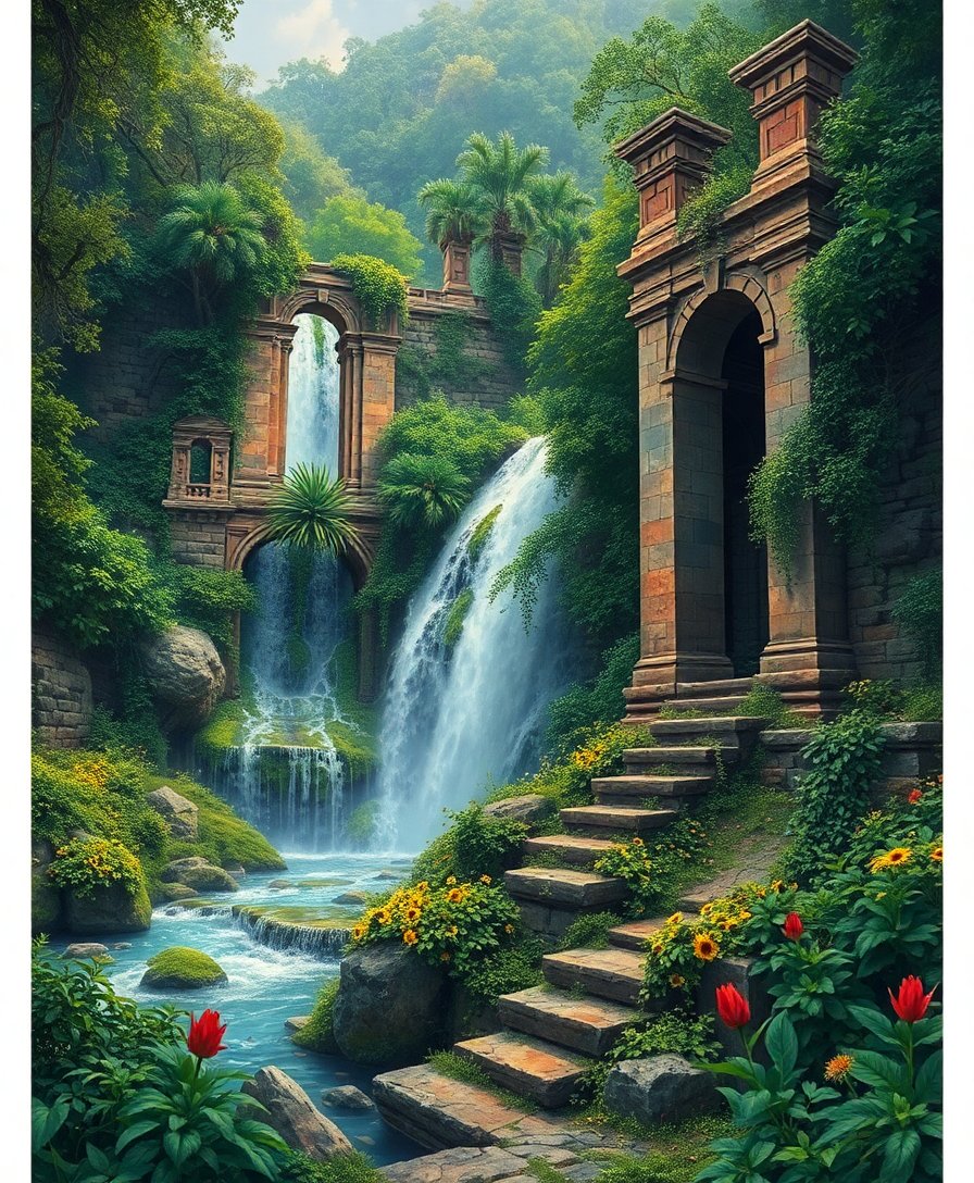 Ultimately, apply final touches to foliage and water highlights using the small brush. Moreover, allow your masterpiece to dry completely before displaying. Consequently, you’ll have created a stunning piece that captures the mystical beauty of overgrown ruins.