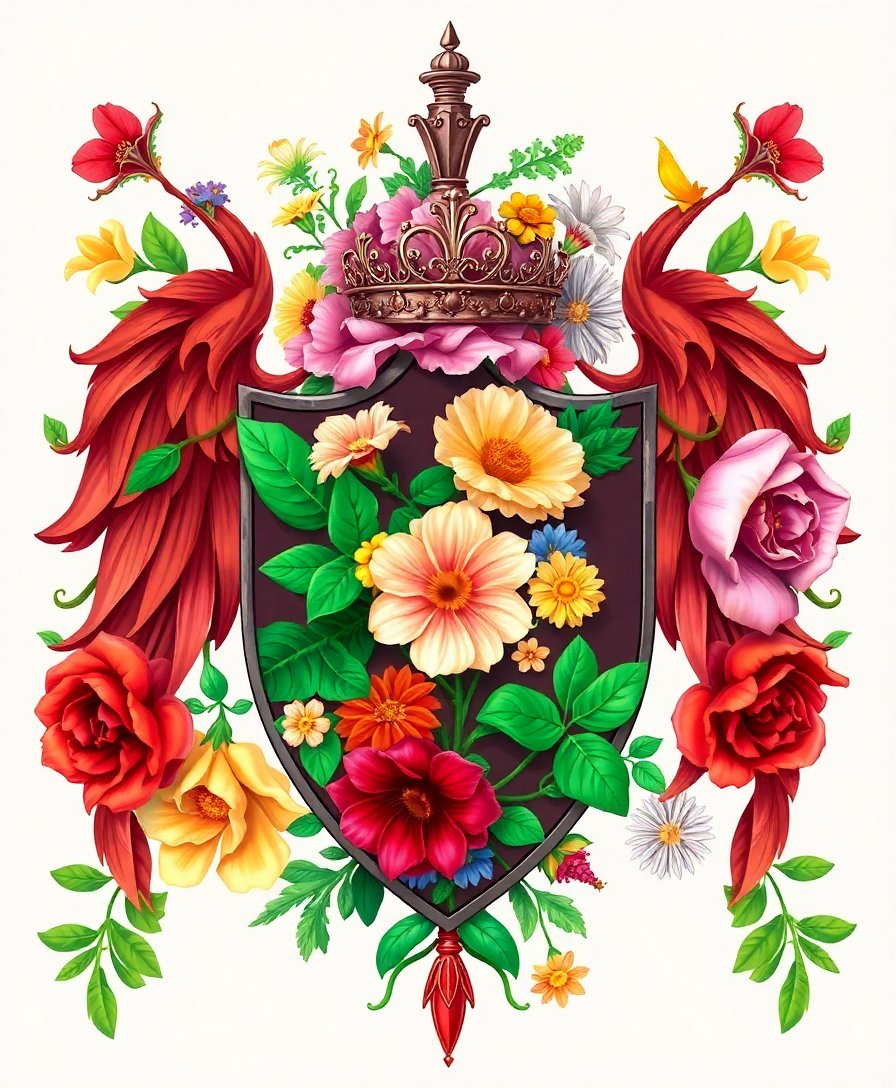 This unique artwork combines realistic botanical elements with medieval Arthurian symbolism. The vintage gold accents and intricate details create a sophisticated piece perfect for any home decor style.