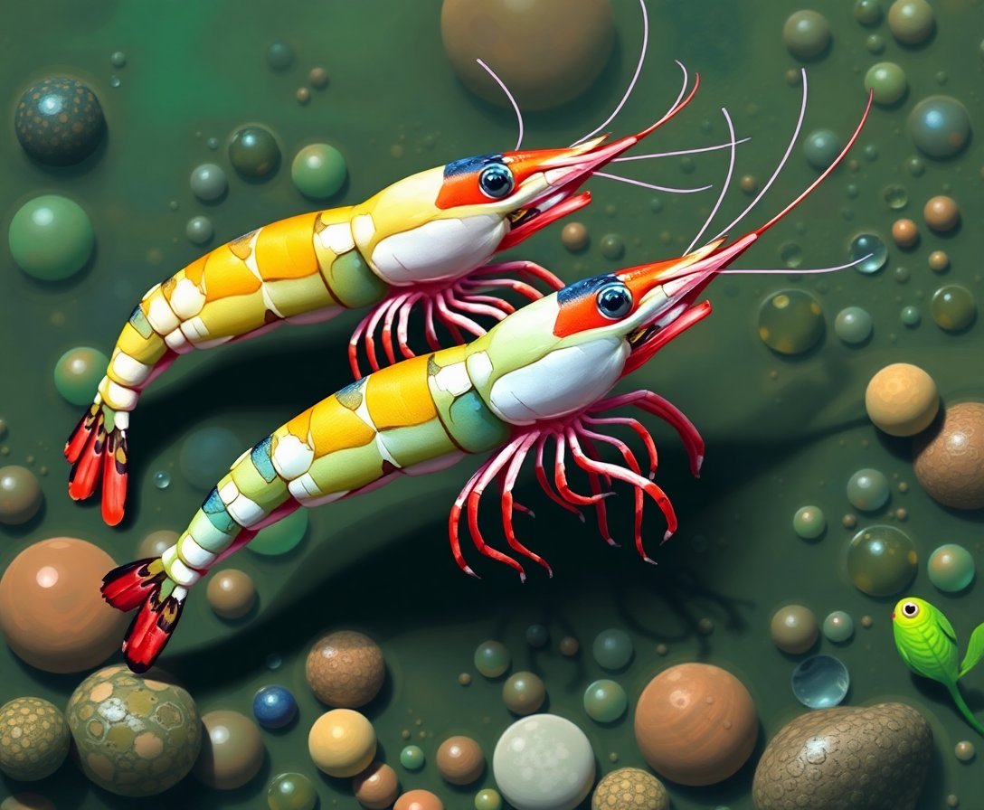 The realistic detail captures the intricate textures and natural coloring of river prawns. You’ll appreciate the macro-level detail that brings these fascinating crustaceans to life.