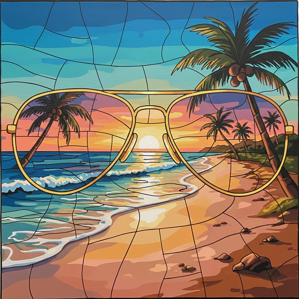 Transform your space with stunning coastal artistry through this beach coastal masterpiece. The Realistic Golden Beach Aviators Paint By Numbers captures the essence of tropical paradise with remarkable detail. This kit brings the warmth of golden sand and reflective sunglasses to life on your canvas.