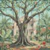 The intricate golden details and twilight swamp theme create a truly unique masquerade experience. This festive design combines realistic artistry with celebratory elements perfect for any space.