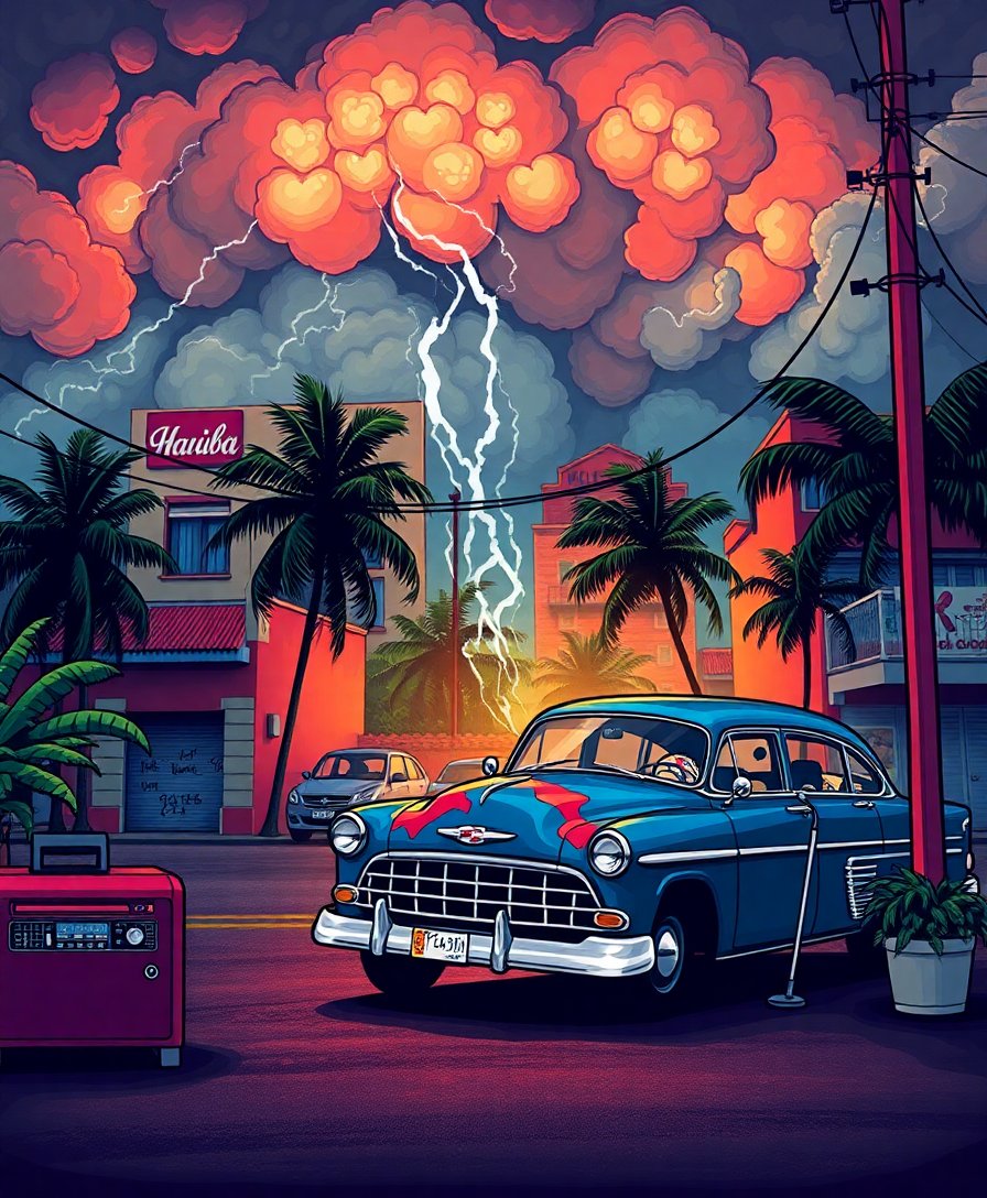 Transform your space with this captivating Realistic Havana Broadcasting Storm Paint By Numbers masterpiece. This nostalgic design captures the drama of a vintage radio broadcast during a tropical storm. Meanwhile, the detailed artwork brings retro charm to any room.