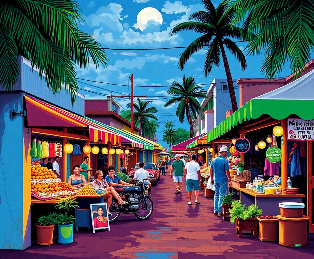 Embrace the vibrant energy of Cuban nightlife through this captivating artistic journey. Your finished masterpiece will transport viewers to those magical evening markets filled with tropical charm and timeless appeal.