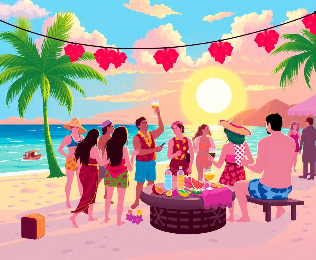 The high-quality linen canvas measures perfectly for wall display while providing ample detail space. The realistic design ensures every beach party element shines beautifully.