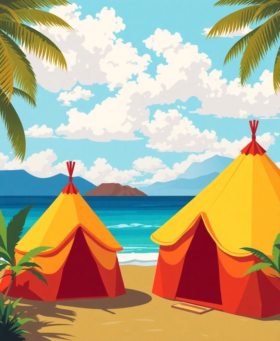 Realistic Hawaiian Shoreline Tents Paint By Numbers