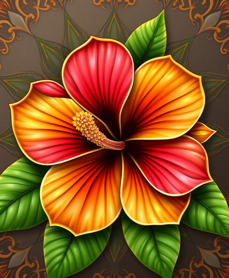 Realistic Hibiscus Brass Mandala Paint By Numbers