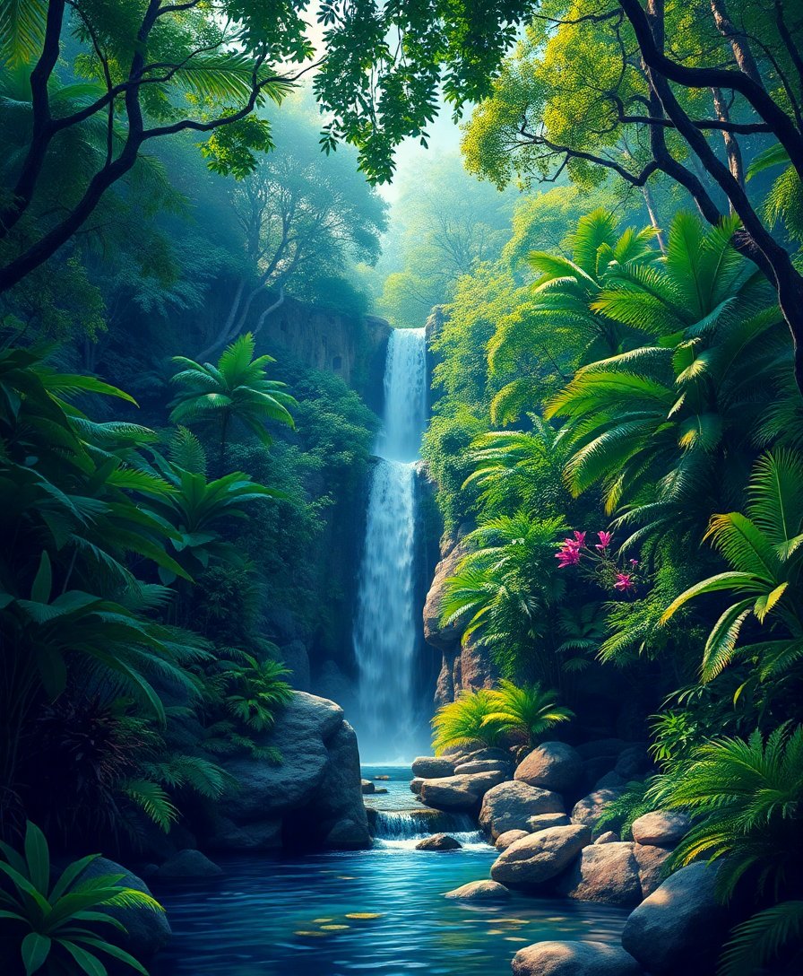 Discover tranquil artistry with this Realistic Hidden Jungle Oasis Paint By Numbers masterpiece. Transform your space into a serene escape. Each brushstroke reveals emerald foliage cascading around peaceful waters.