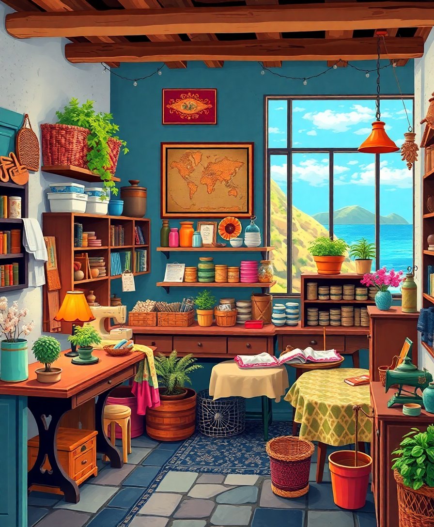 Transform your space with the enchanting Realistic Island Haberdashery Scene Paint By Numbers. This captivating kit brings vintage charm to life. Meanwhile, tropical elements blend seamlessly with antique sewing notions. Consequently, you’ll create a masterpiece that celebrates traditional craftsmanship.
