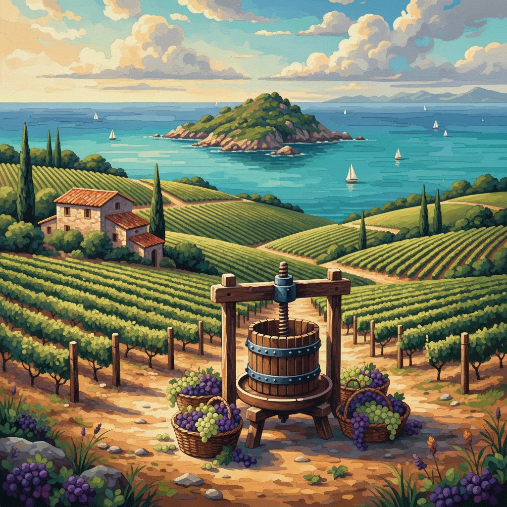 Transform your artistic space with the captivating Realistic Island Vineyard Press Paint By Numbers kit. This extraordinary design captures the essence of a sun-drenched wine estate. Experience the tranquil beauty of rolling vineyard landscapes through detailed brushstrokes.