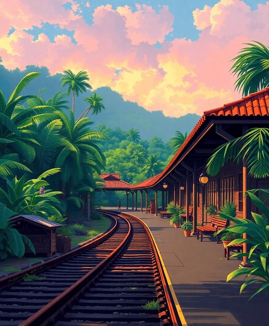 Ultimately, step back and admire your completed vintage depot scene. Additionally, the morning light filtering through jungle vegetation creates breathtaking visual depth. Moreover, your finished artwork captures the romantic essence of bygone railway era perfectly.