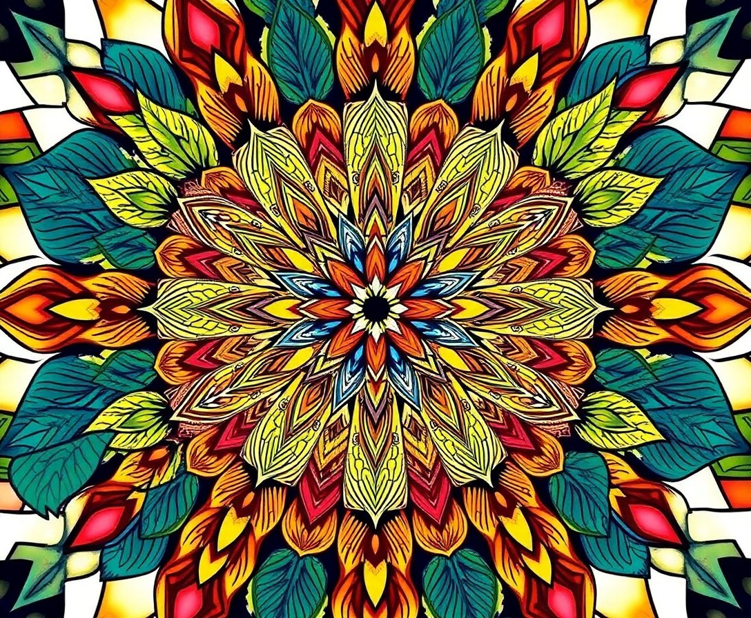 The realistic detail captures authentic tropical elements while maintaining mandala’s spiritual significance. The intricate feather patterns create stunning visual depth and natural beauty.