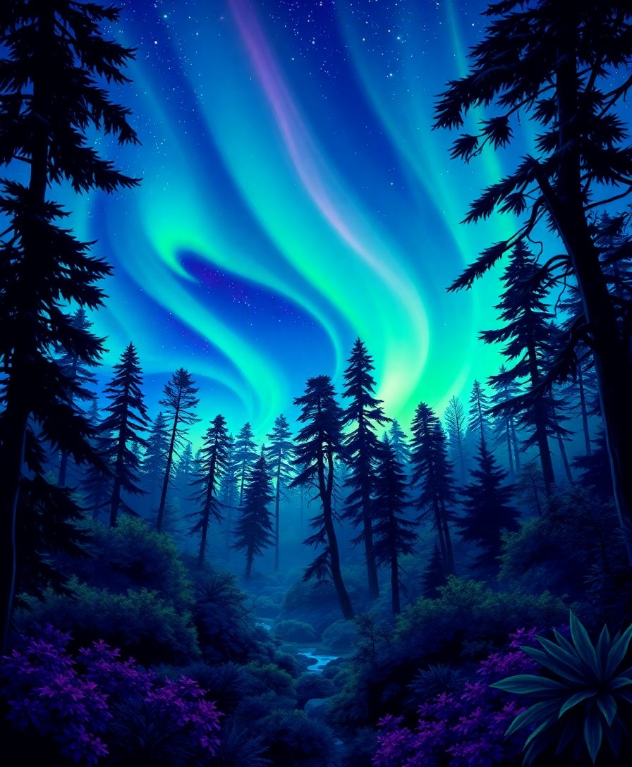 Ultimately, step back and admire your completed masterpiece. The midnight aurora borealis will shimmer against the jungle silhouette. Therefore, you’ll have created a stunning nature artwork perfect for any room.