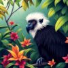 Ultimately, apply final touches to enhance the monochrome fur textures and vine shadows. Consequently, your completed artwork showcases the magnificent beauty of rainforest primates in their natural habitat. The finished piece becomes a captivating focal point for any room.