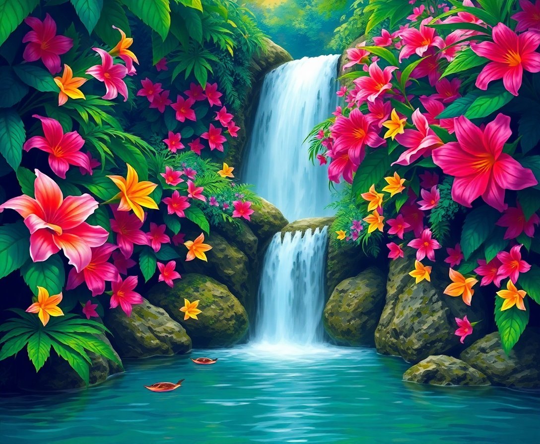 Transform your space with the breathtaking beauty of a tropical paradise through this Realistic Jungle Waterfall Blooms Paint By Numbers kit. This stunning design captures cascading water surrounded by vibrant tropical flora, bringing nature’s serenity directly into your home.