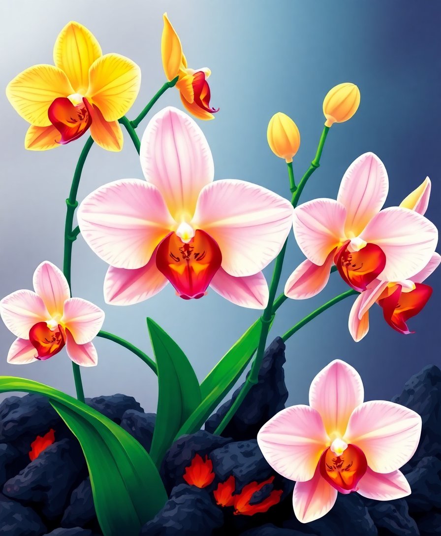 Transform your space with this stunning Realistic Lava Stone Orchids Paint By Numbers masterpiece. This unique design captures delicate orchid petals emerging from volcanic pumice stone. Each brushstroke brings nature’s resilience to life on your canvas.