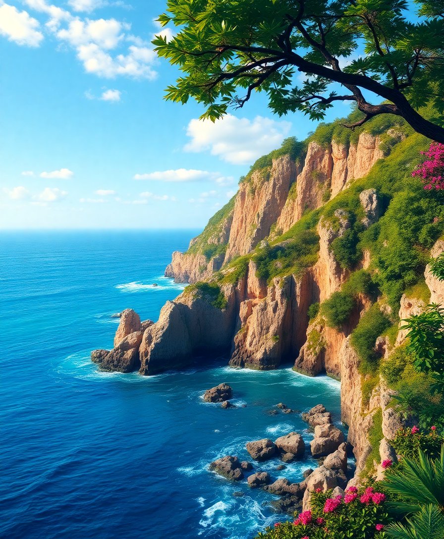 Ultimately, step back and admire your completed coastal masterpiece. Moreover, the dramatic cliffs and lush foliage create stunning visual impact. Additionally, your finished artwork brings coastal tranquility into any living space.