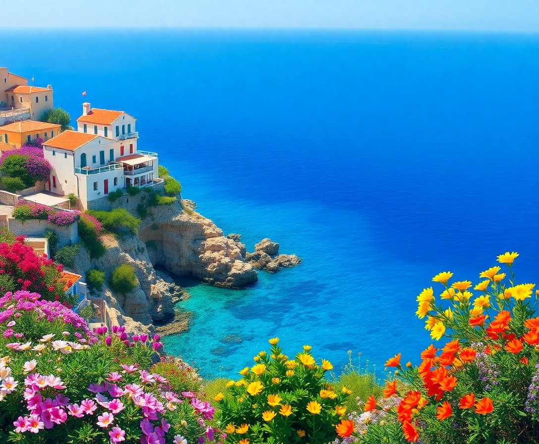 Realistic Mediterranean Floral Coast Paint By Numbers
