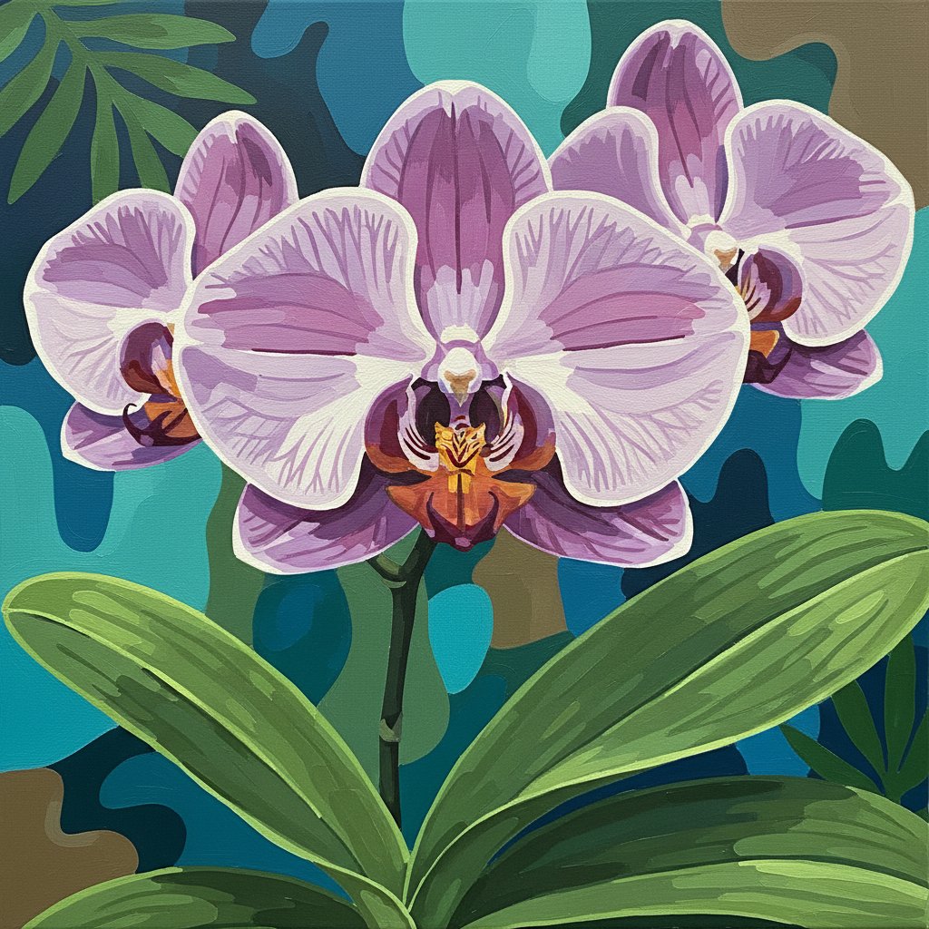 Subsequently, begin with the lighter orchid petals using gentle brushstrokes. Follow the numbered sections methodically. Watch as realistic botanical details emerge with each careful application of paint.