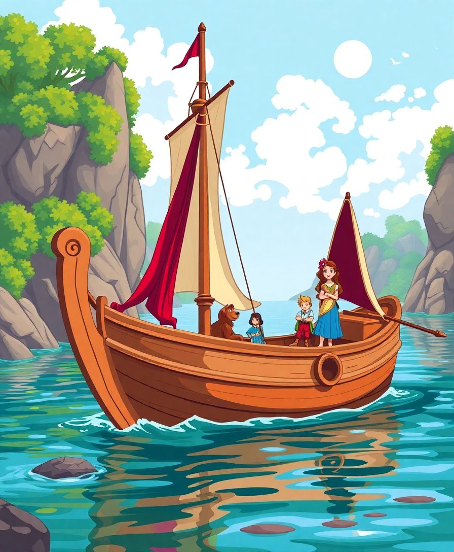 Ultimately, add final details with the small brush for crisp lines. Consequently, your magical vessel emerges in stunning detail against the azure lagoon backdrop.