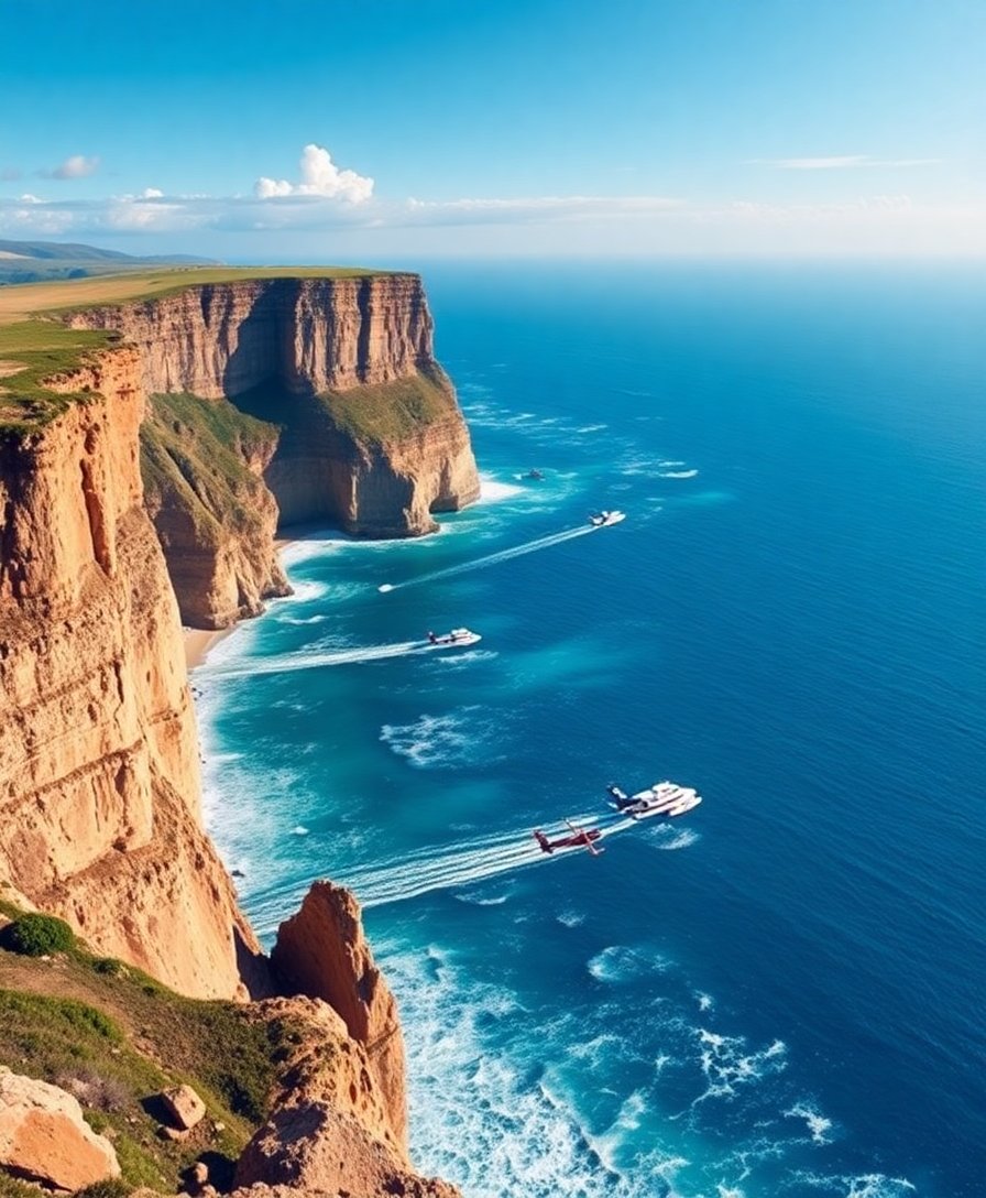 Subsequently, begin with the azure ocean sections using the numbered guide system. Work methodically through each aircraft detail and dramatic cliff formation. Watch your dramatic seaside scene come alive with every brushstroke.