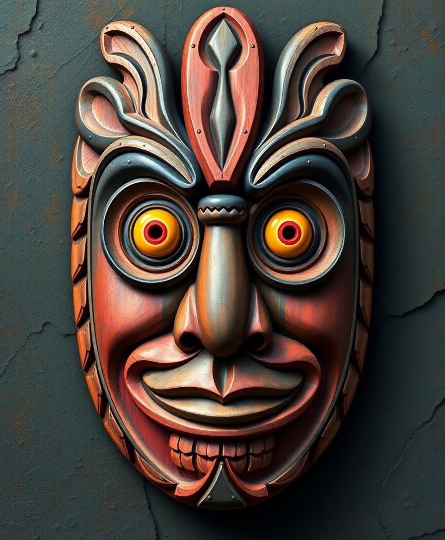 This design authentically represents Polynesian artistic traditions with realistic shadows and vintage carving details. The finished piece celebrates oceanic heritage while creating meaningful wall art.