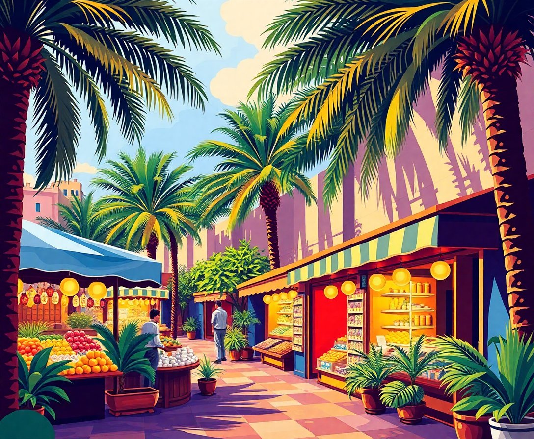 Transform your space with the captivating beauty of an authentic Middle Eastern marketplace through this Realistic Palm Shaded Bazaar Paint By Numbers masterpiece. This stunning kit captures the essence of sunlit trading posts where merchants gather beneath towering palms. Experience the magic of creating your own vintage-inspired artwork.