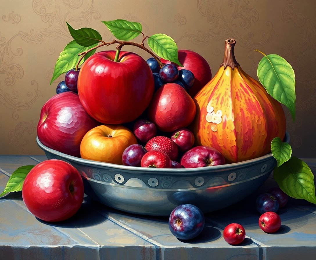 Begin your artistic adventure today with this captivating Realistic Pewter Fruit Study Paint By Numbers creation. Transform any space with this elegant, moody masterpiece that celebrates timeless baroque beauty.