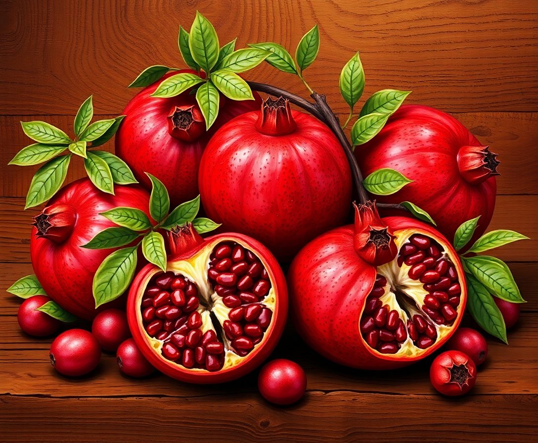 Transform your creative space with this stunning Realistic Pomegranates On Teak Paint By Numbers design. This sophisticated still life captures ruby-red pomegranates against rich teak wood. Perfect for adding warmth to your Thanksgiving decor.