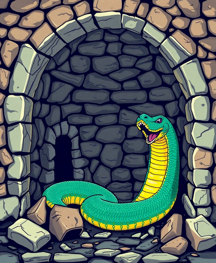The realistic serpent and weathered tomb details create stunning atmospheric depth. Mossy textures and crumbling stone effects provide an engaging artistic challenge.