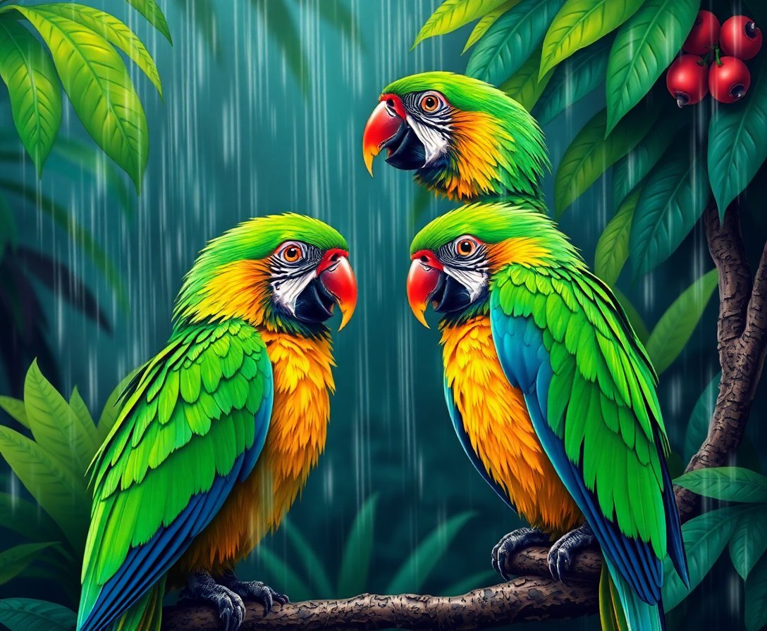 Realistic Rainforest Storm Parrots Paint By Numbers