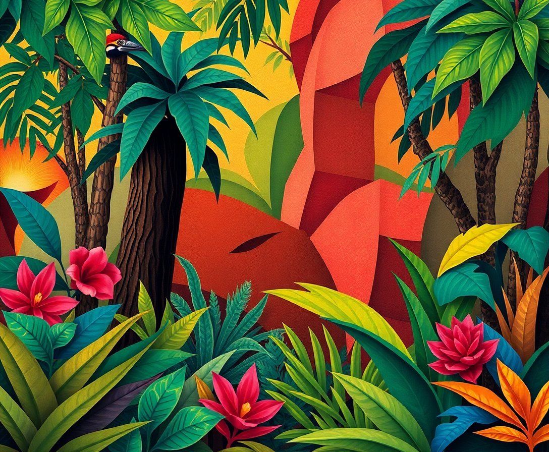 Ultimately, complete smaller details with the fine brush for perfect finishing touches. Allow proper drying time before displaying your masterpiece. Your geometric jungle creation will showcase impressive cubist techniques and tropical beauty.