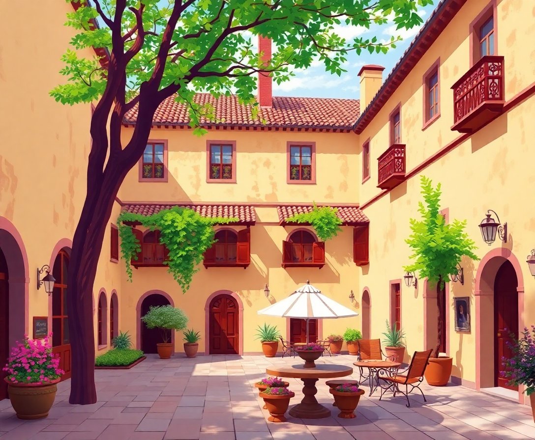 Witness your historical courtyard come alive with each brushstroke. Subsequently, the lush palace gardens and sunlit architecture emerge beautifully. Therefore, every detail contributes to the romantic atmosphere.