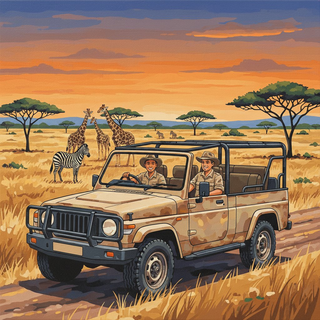 Transform your creative space with the Realistic Savannah Jeep Ride Paint By Numbers experience. This stunning kit captures the golden hour magic of off-road adventure across dusty heritage backroads. Each brushstroke brings the sunset landscape to life with remarkable detail.