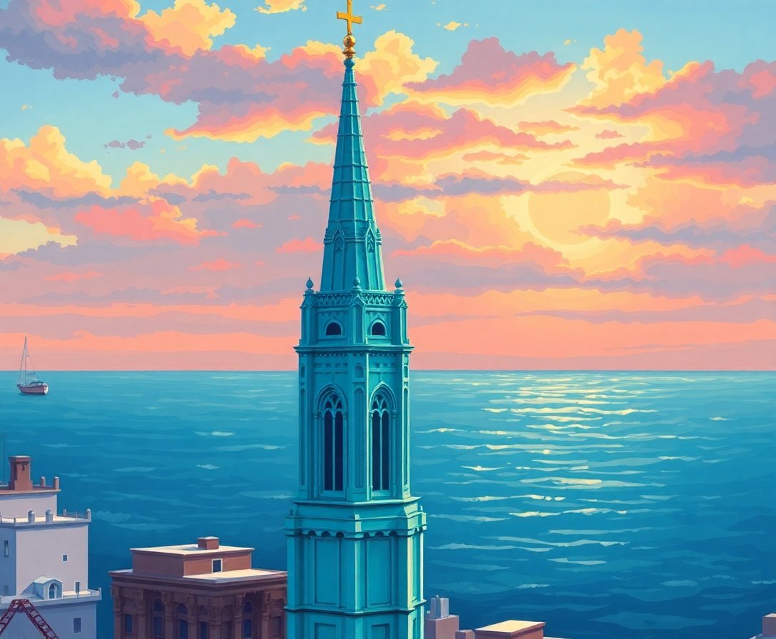 Ultimately, add the final details with your small brush for precision work. Watch as the seafoam green hues and morning light effects bring your tower to life. Your completed masterpiece becomes a stunning focal point worthy of any sophisticated interior.