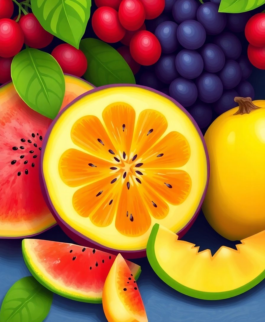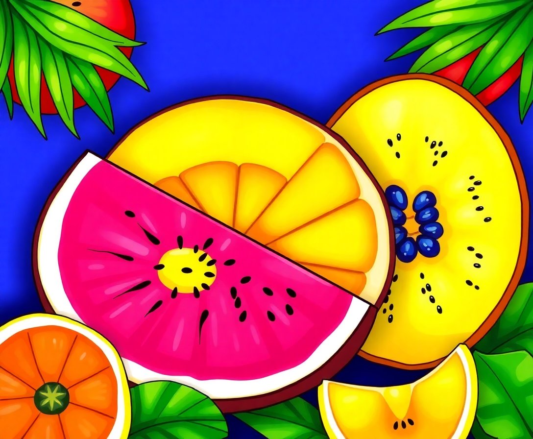 The realistic textures and vibrant colors capture the essence of fresh tropical fruits. Each slice shows incredible detail that creates an almost three-dimensional effect on your finished canvas.