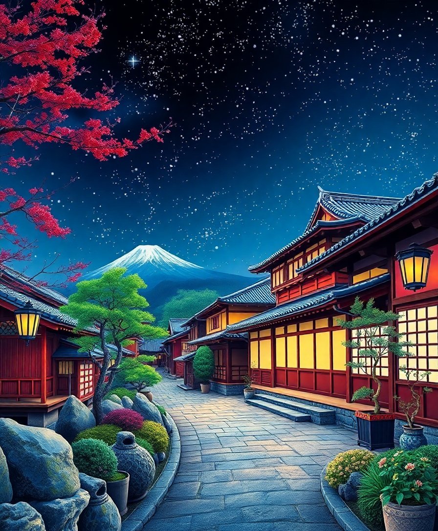 Realistic Starlit Japanese Terrace Paint By Numbers