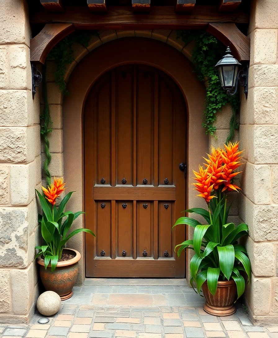 Transform your creative space with this stunning Realistic Strelitzia Rustic Doorway Paint By Numbers masterpiece. This captivating design combines vibrant orange botanical elements with charming European architecture, creating an artistic journey through cobblestoned old-world beauty.