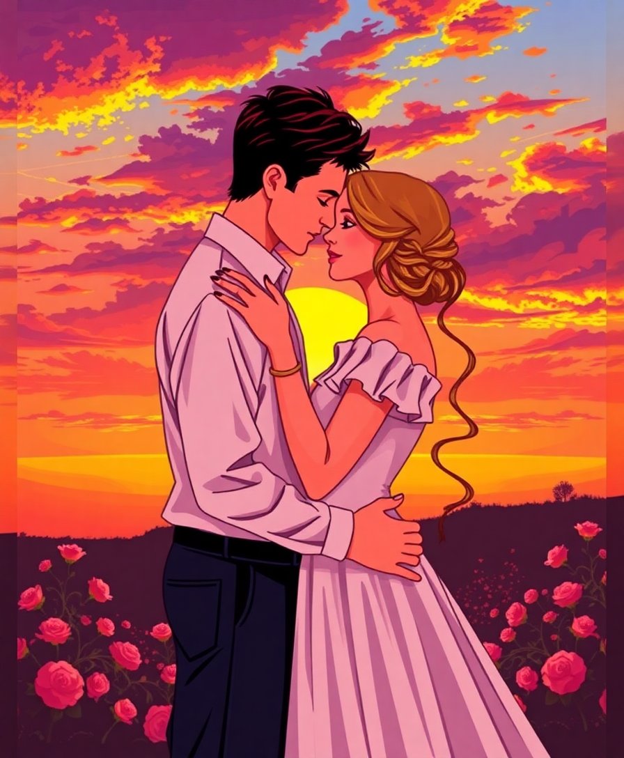 Perfect for Valentine’s Day, anniversaries, or any romantic occasion. The sunset embrace theme creates meaningful artwork couples can treasure together.