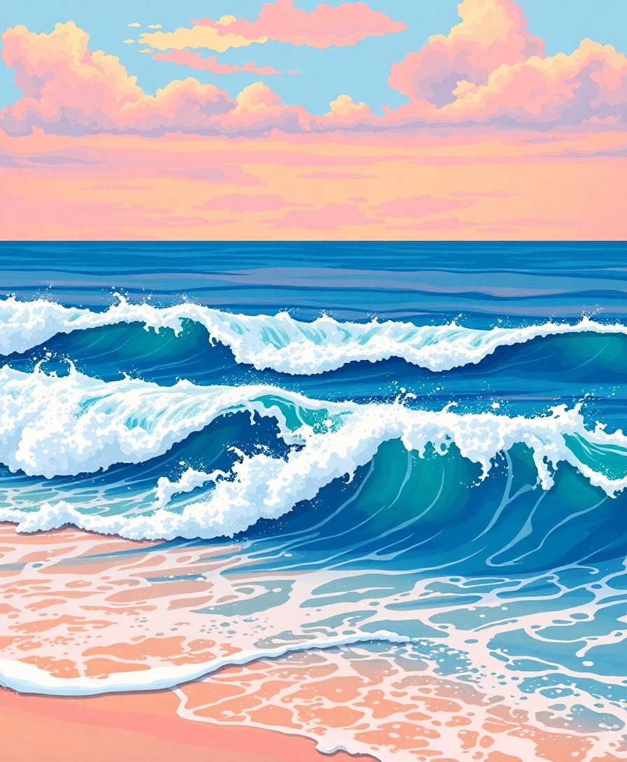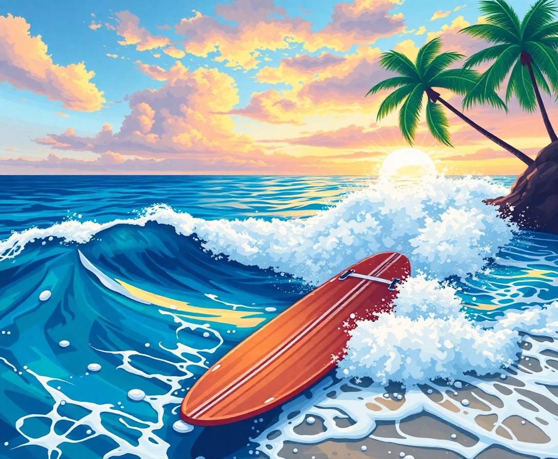Realistic Surfboard Shore Waves Paint By Numbers