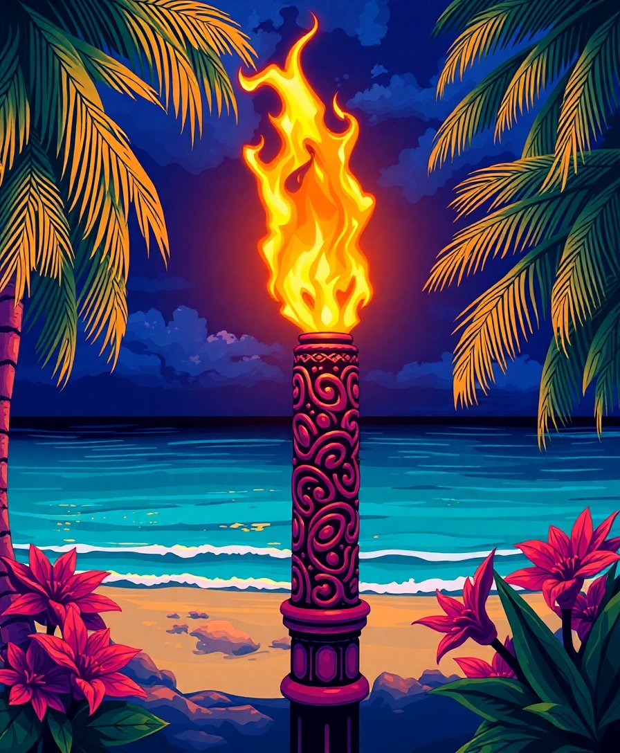 Transform your space with the mesmerizing warmth of a Realistic Tiki Torch Glow Paint By Numbers kit. This captivating artwork captures the enchanting dance of flames against a tropical nighttime backdrop. Additionally, this stunning piece brings coastal paradise directly into your home.
