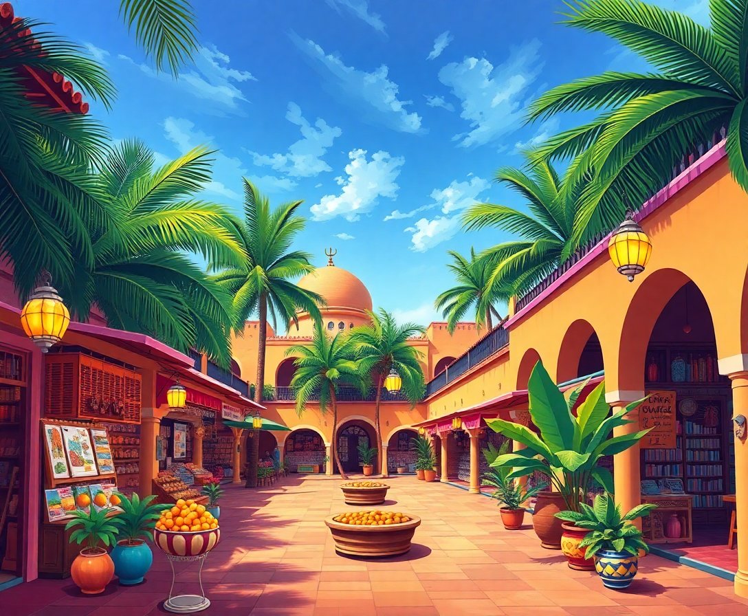 Realistic Tropical Bazaar Courtyard Paint By Numbers