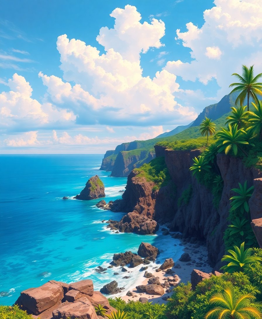Realistic Tropical Cliff Shores Paint By Numbers