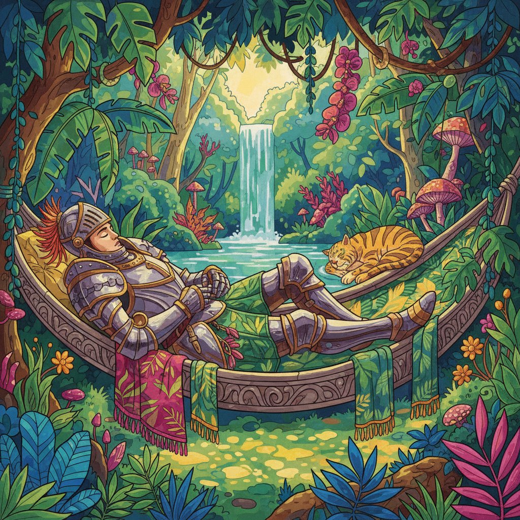Create your own tropical knight sanctuary today. Let this peaceful warrior guide your artistic journey through realms of imagination and creativity.