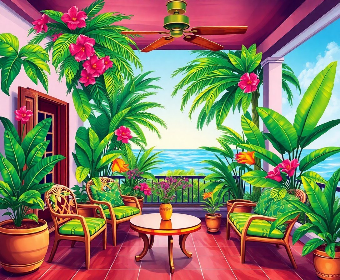 Transform your creative space with this Realistic Tropical Parlor Scene Paint By Numbers kit. This stunning Victorian-inspired design brings lush greenery into a nostalgic indoor setting. Experience the joy of recreating an elegant parlor filled with tropical plants and timeless charm.