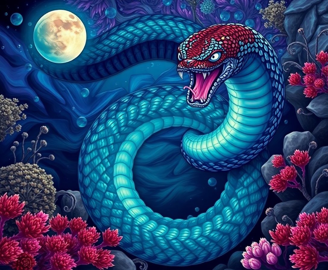 Ultimately, add final details and highlights to bring your marine creature to life. Step back and admire your completed masterpiece. Your twilight serpent now radiates with realistic beauty and mysterious charm.